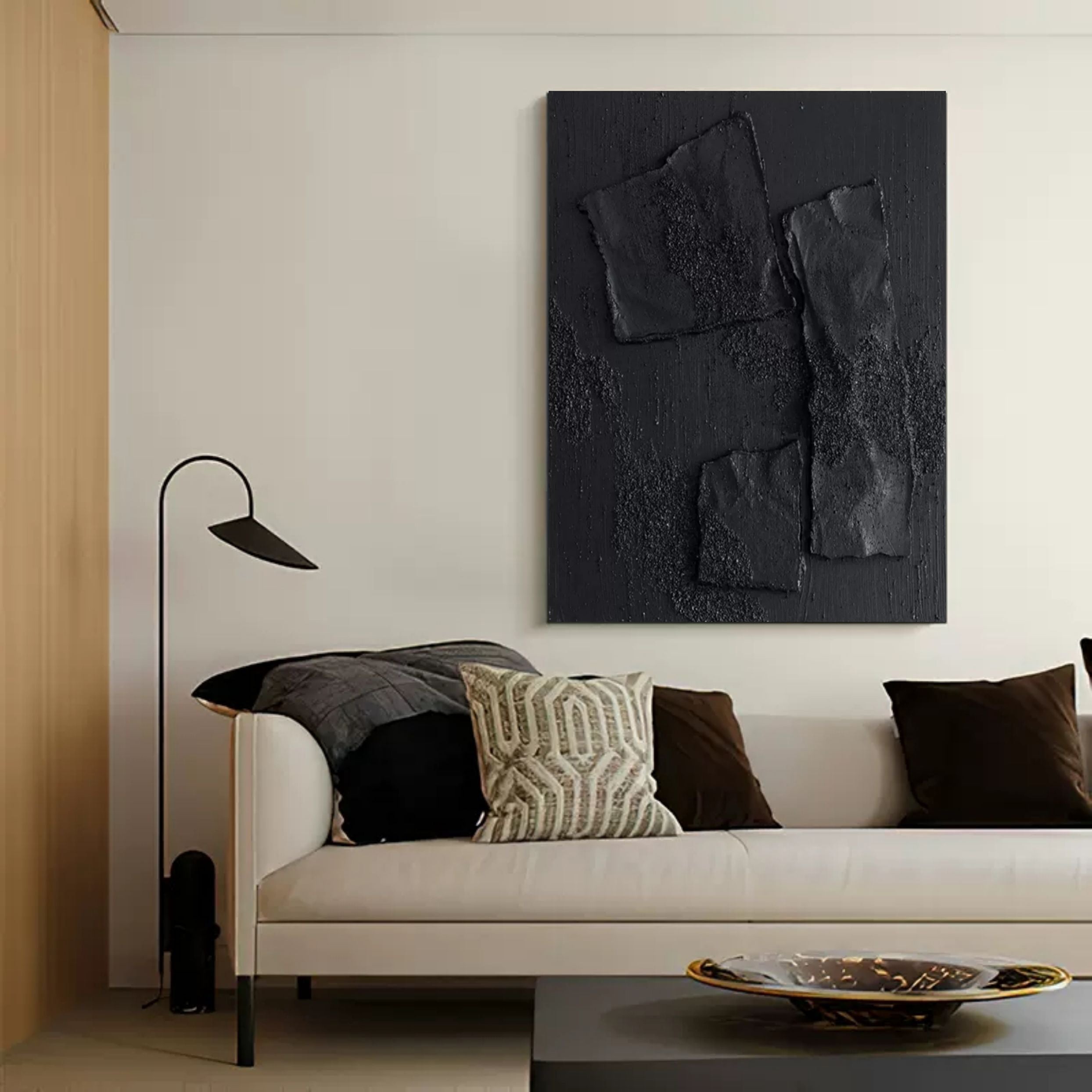 Large Black 3D Abstract Art Wabi-Sabi Wall Art Textured Wall Art Minimalist Canvas Paintings