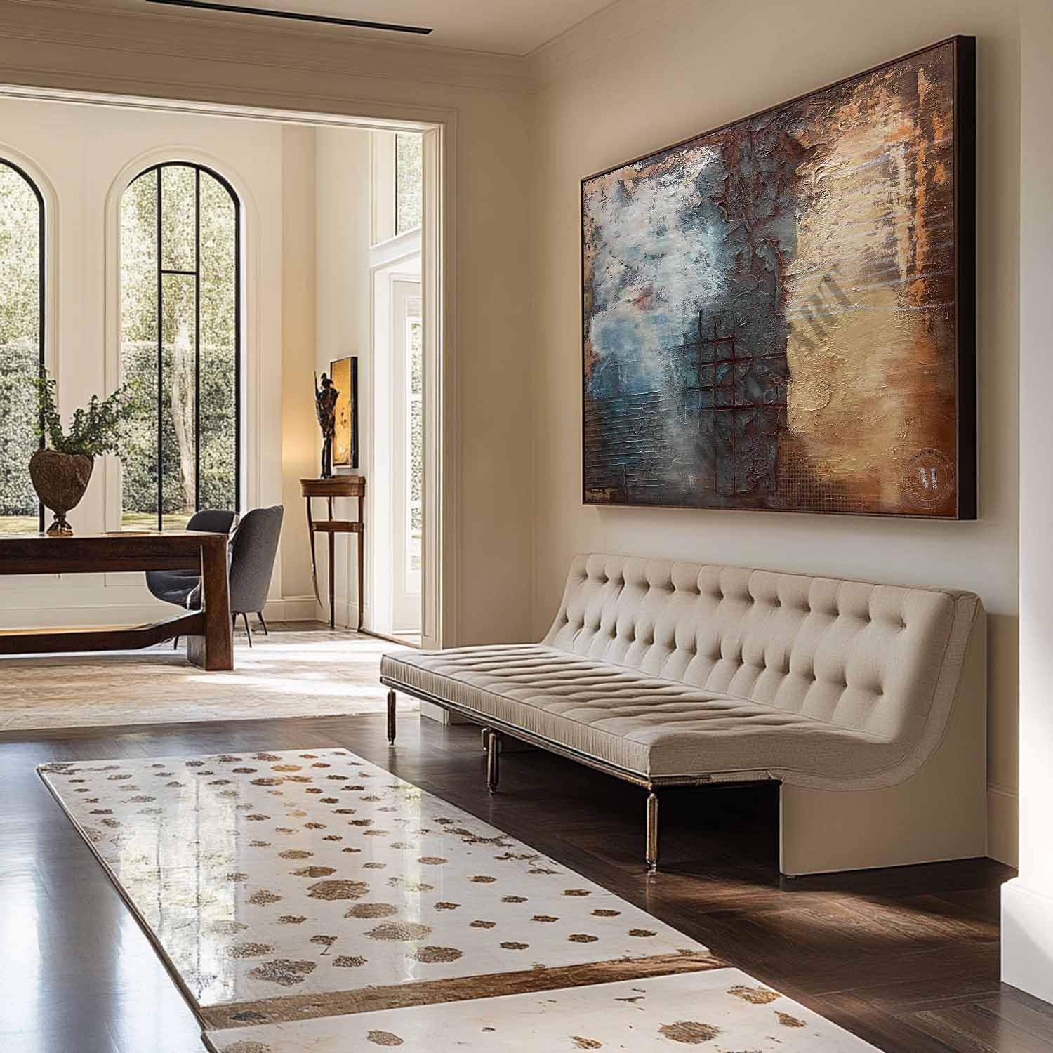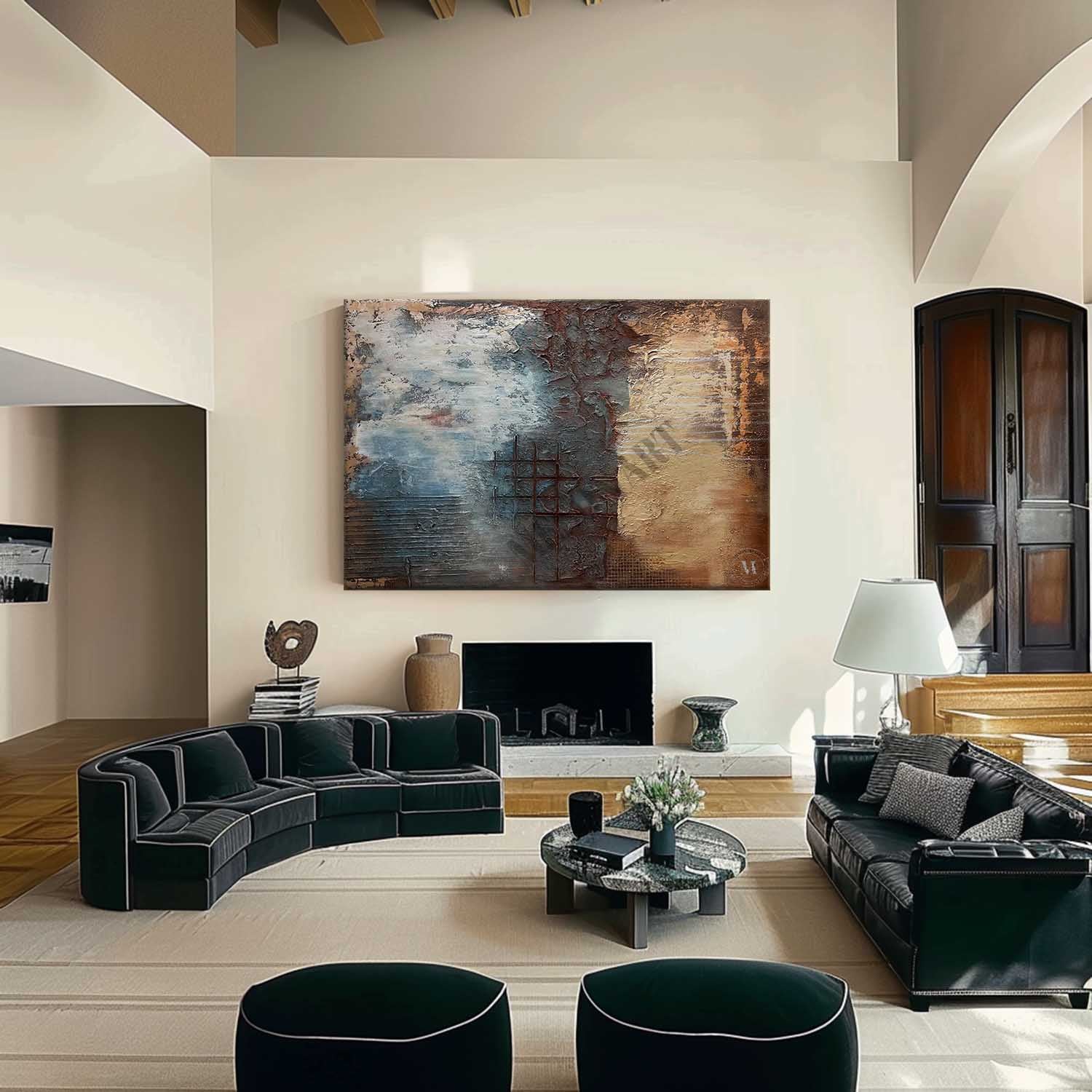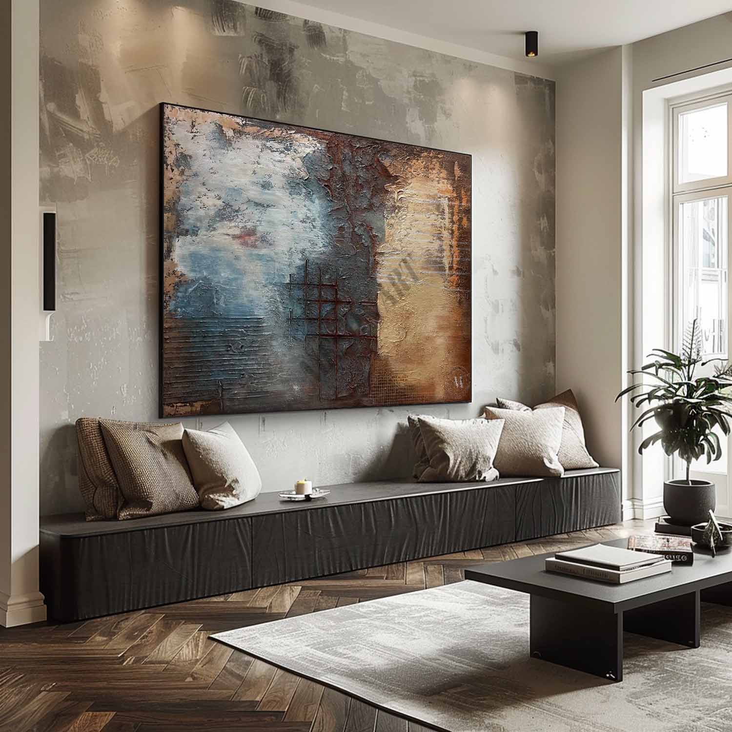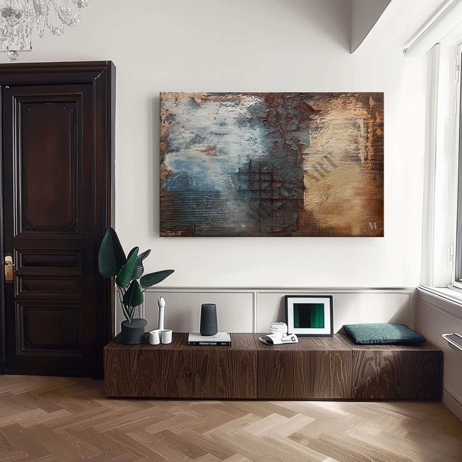 Large Wabi Sabi Abstract Art Wall Decor Blue and Brown Textured Painting for Sale