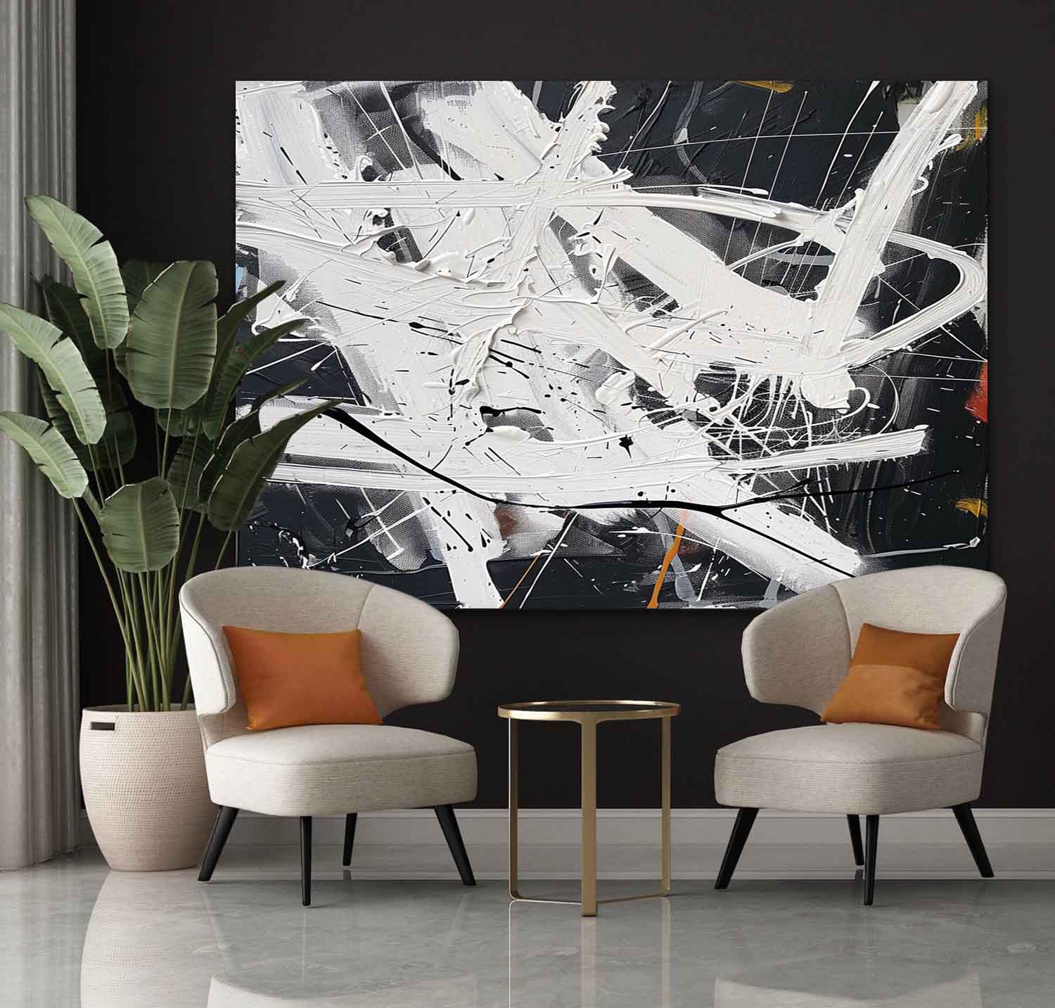 Large Black and White Modern Wall Paintings for Sale Black and White Abstract Art Canvas