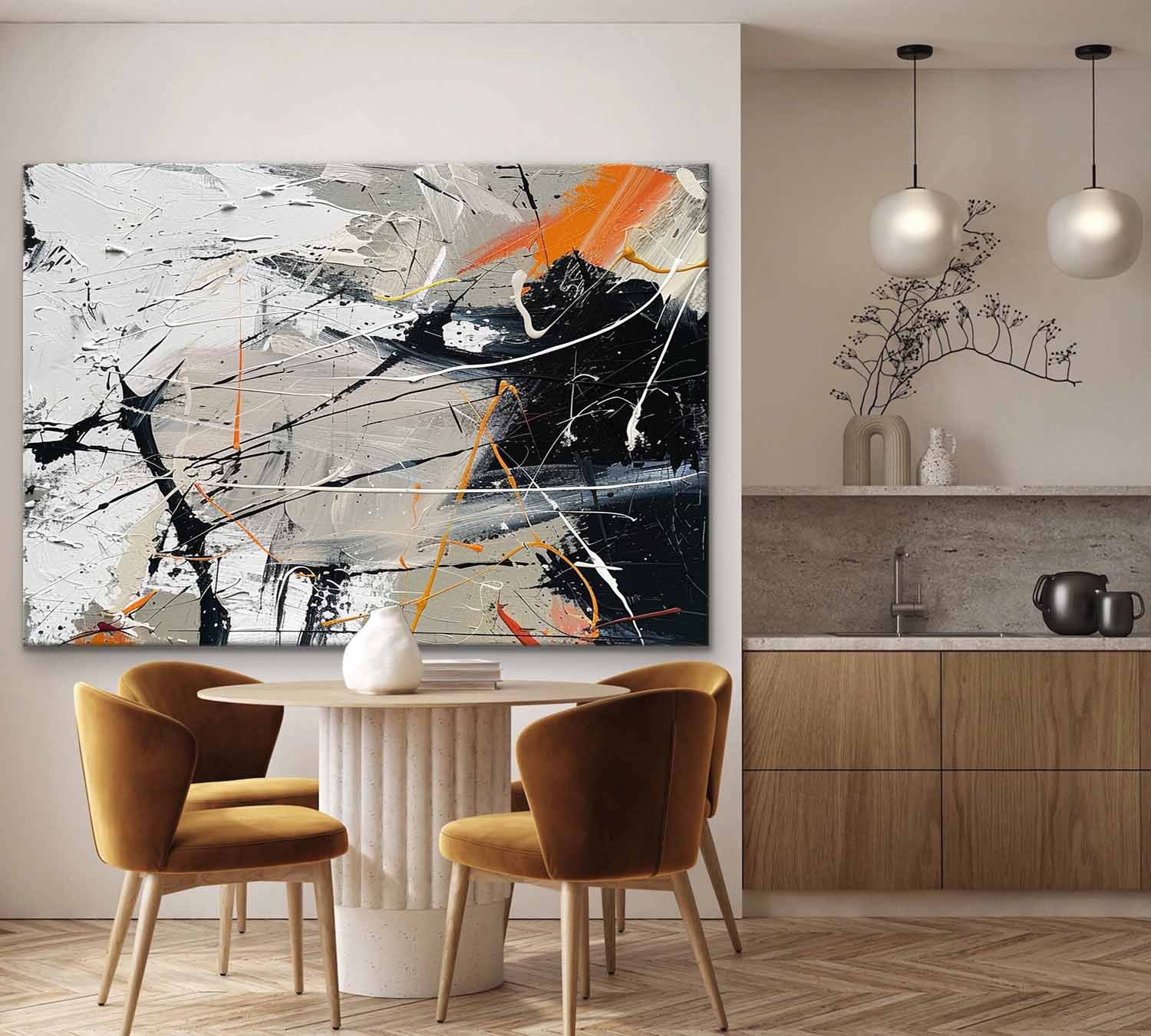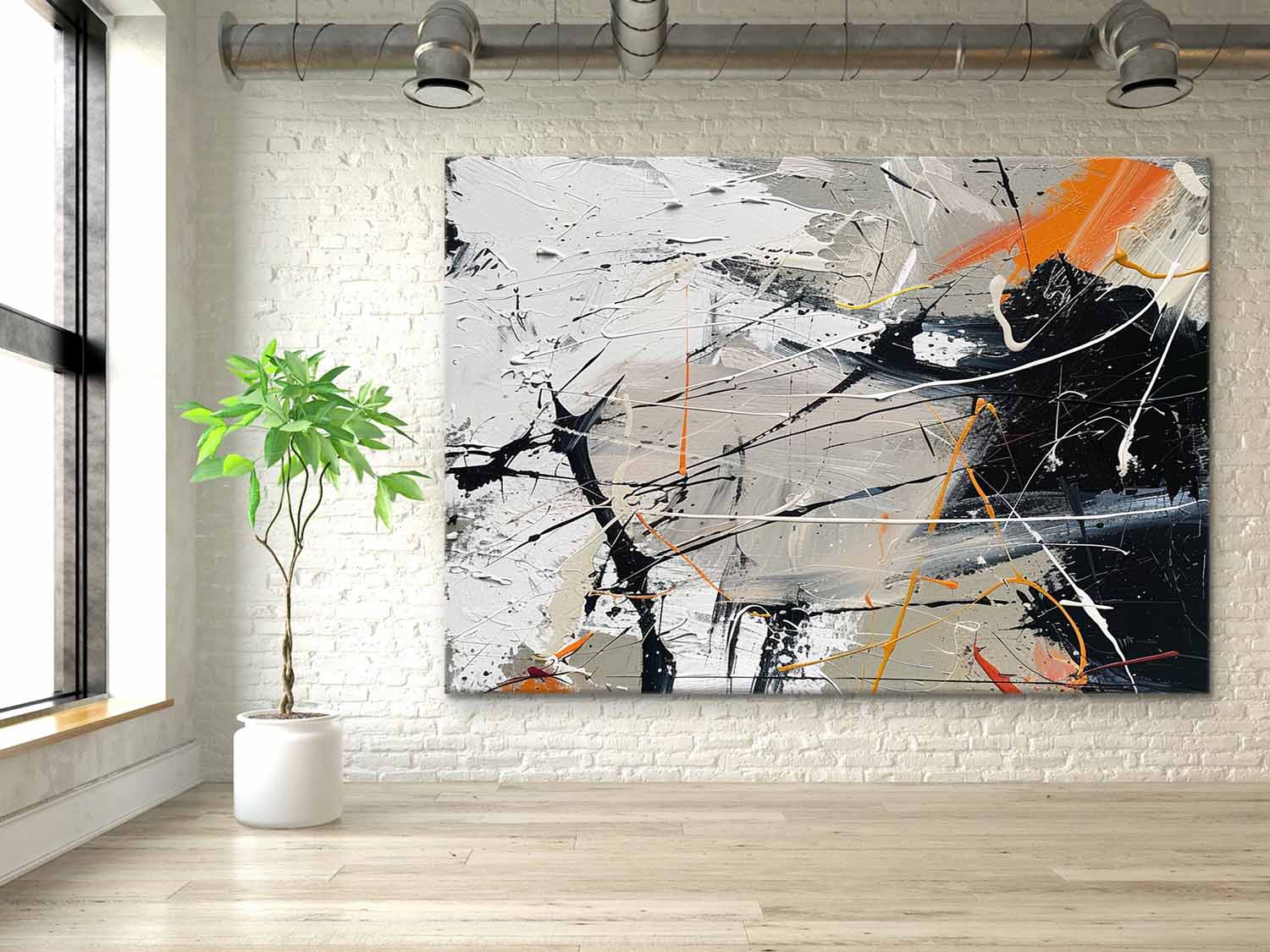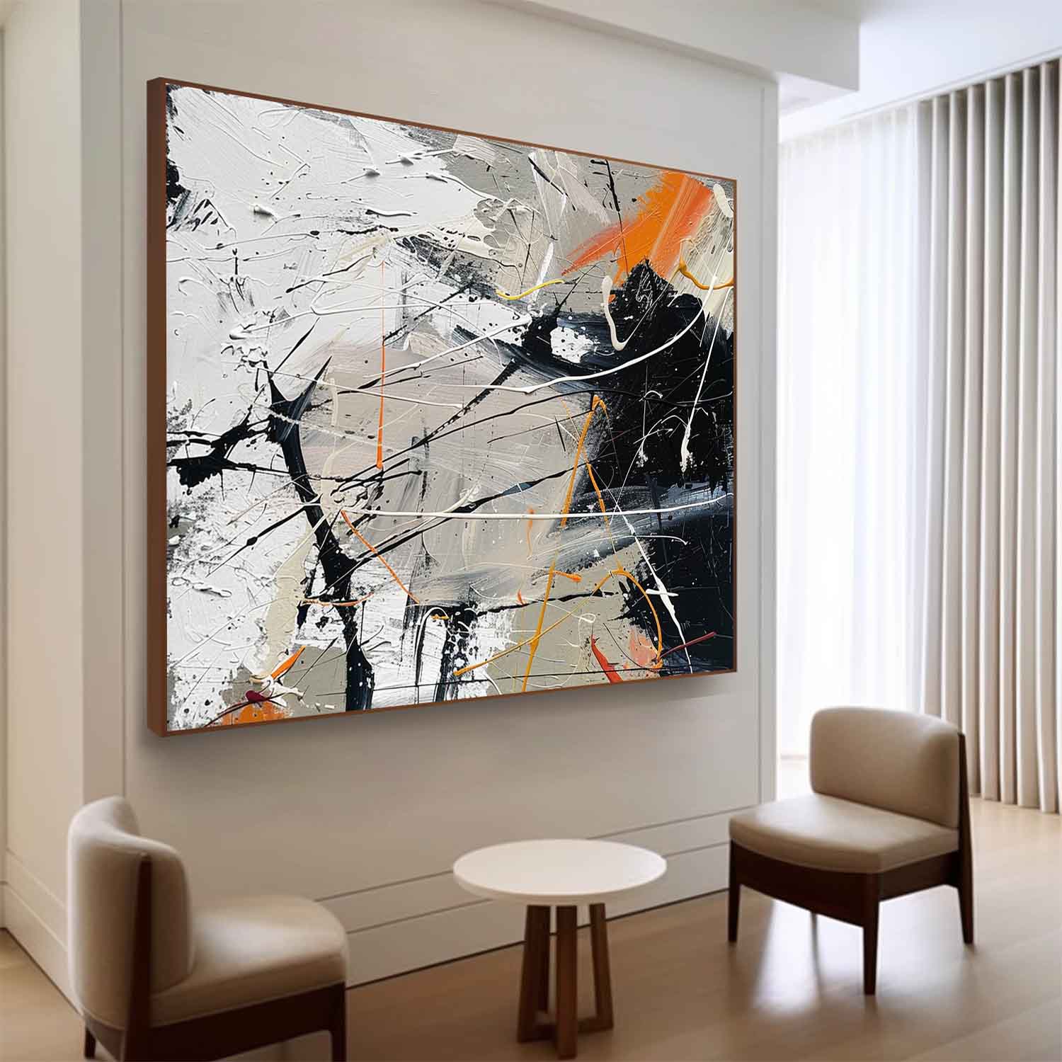 Large Black and White Modern Wall Painting Black and White Abstract Canvas Art for Sale