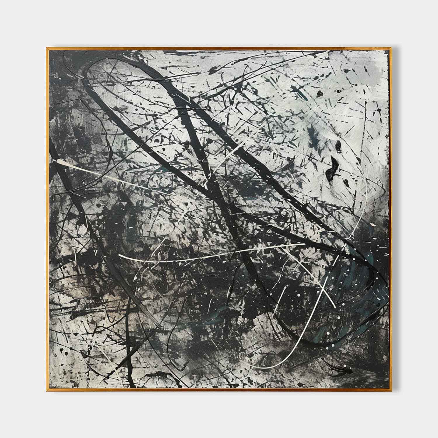 Large Black and White Contemporary Wall Painting for Sale Black and White Minimalist Oil Painting on Canvas