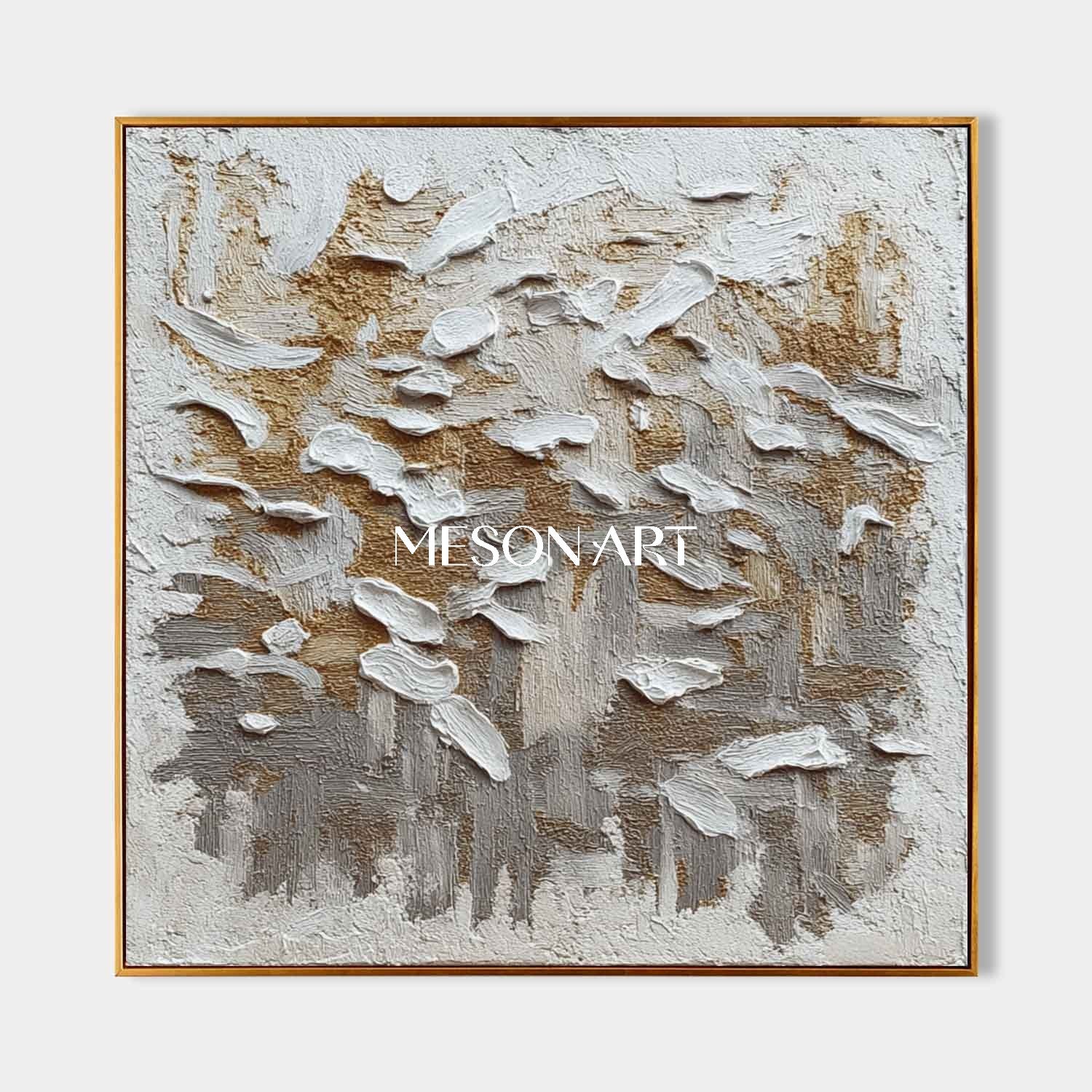 Wabi-Sabi Abstract Art Minimalist Gold Gray White Textured Canvas