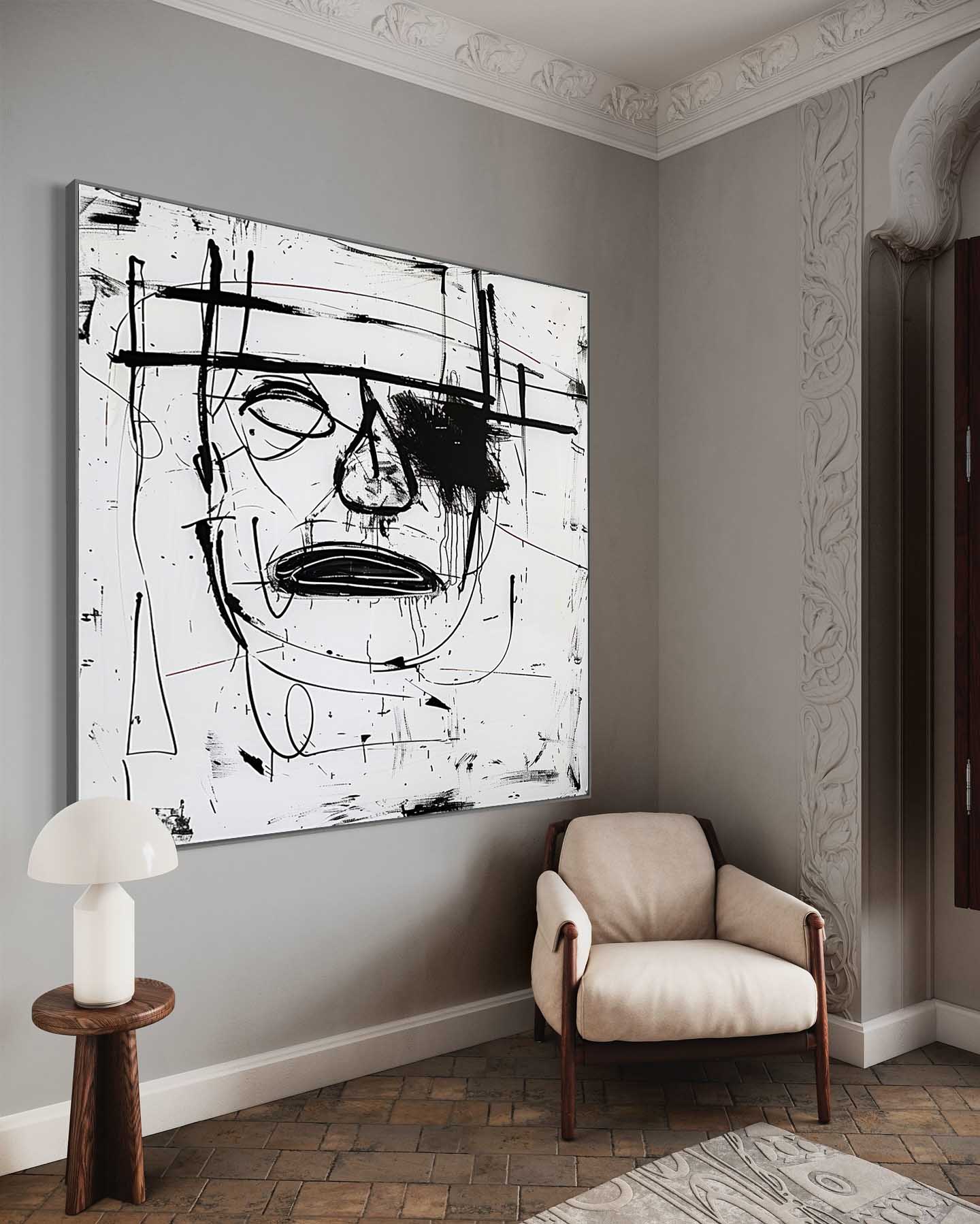 Modern Abstract Expressionist Art Canvas for Sale Black Contemporary Minimalist Abstract Wall Art