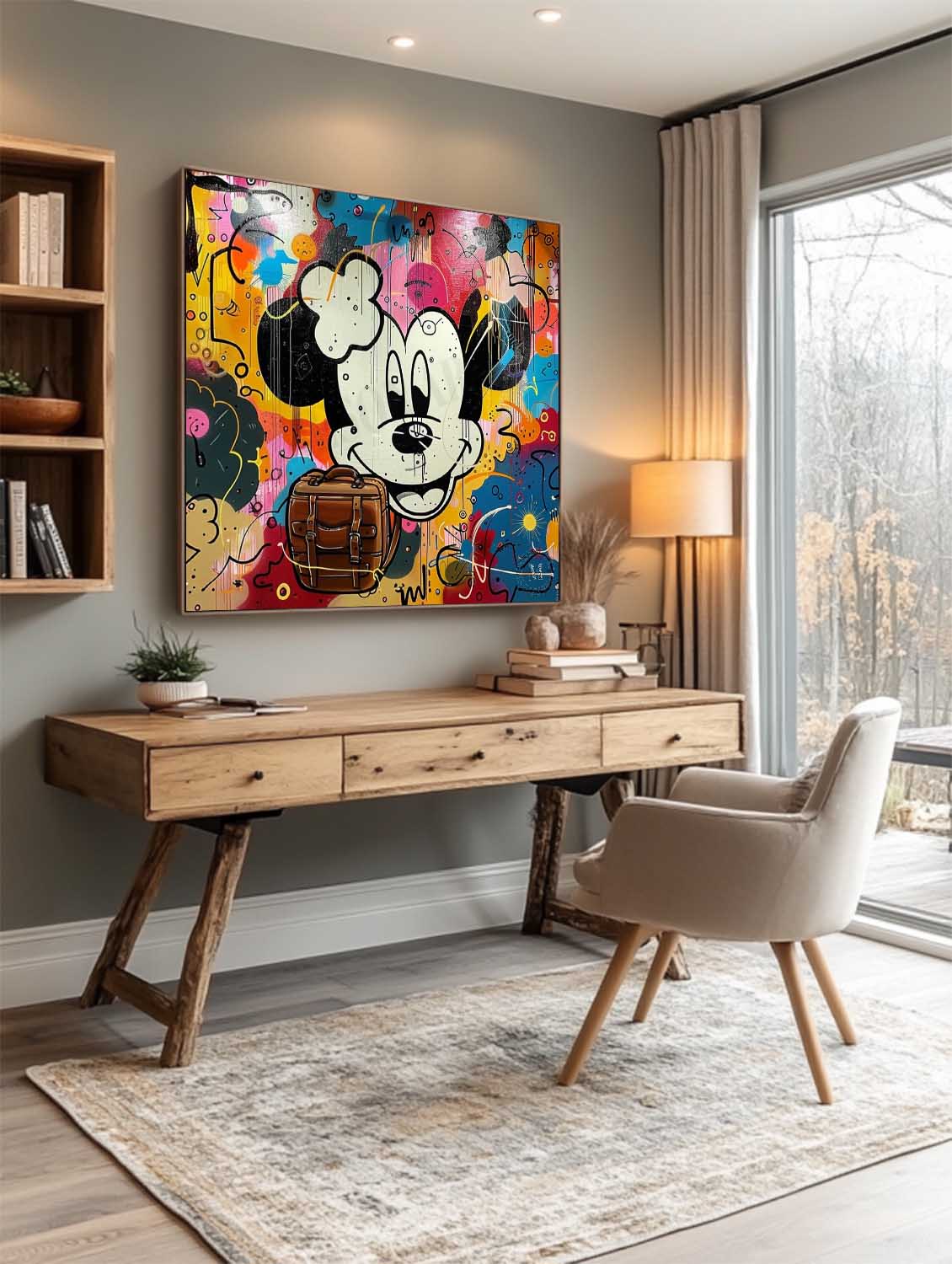 Mickey Mouse and Hermes Bag Graffiti Painting Hermes Orange Bag Canvas Wall Decor