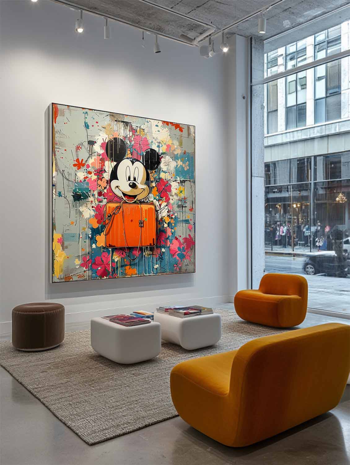 Smiley Mickey Mouse and Hermes Orange Bag Art for Sale Hermes Orange Bag Wall Art Decoration