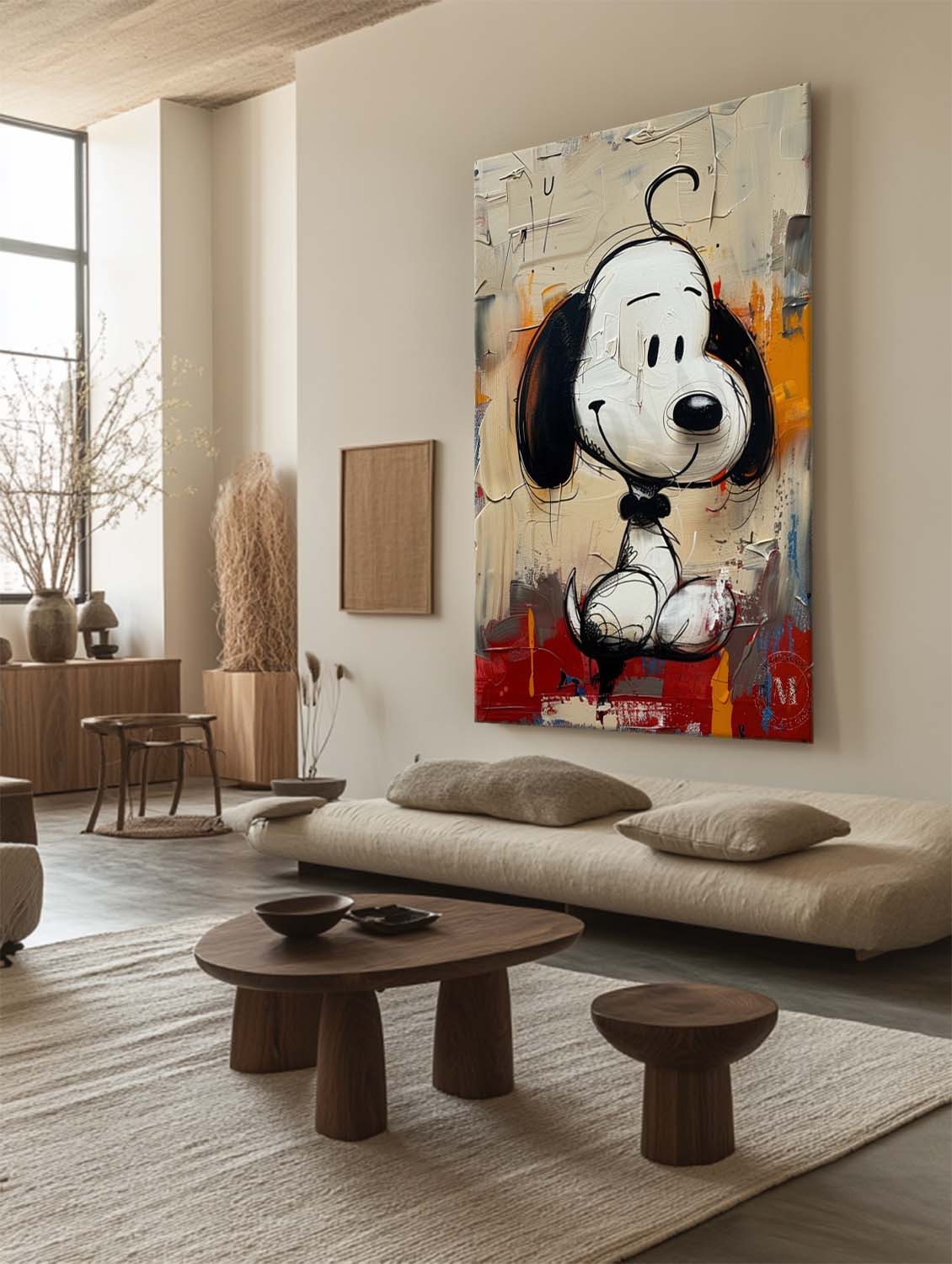 Playful Snoopy Grafitti Wall Art Pop Canvas Street Style Original Painting for Kids Home Decor