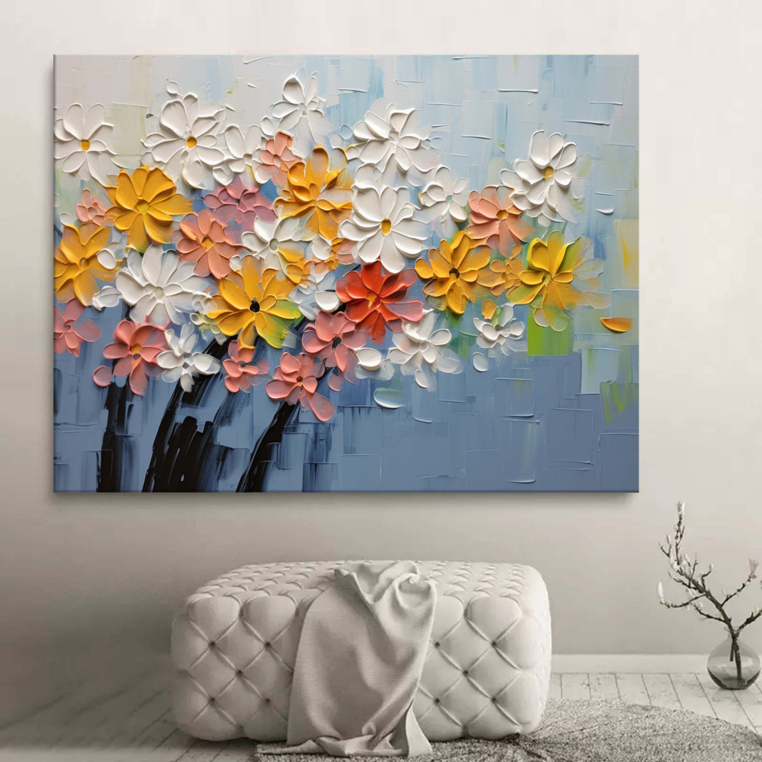 Large White and Yellow Flowers Texture Painting Flowers Texture Wall Art Flowers Canvas Art For Sale