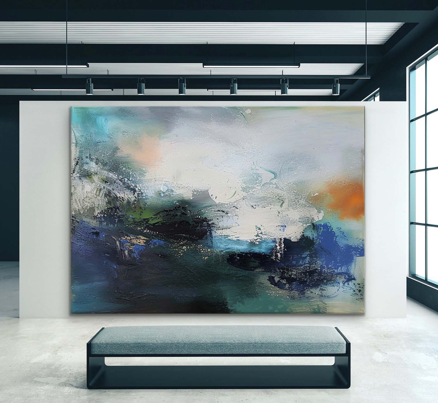 Large Blue Abstract Texture Painting Blue Abstract Art on Canvas for Sale Blue Abstract Wall Art