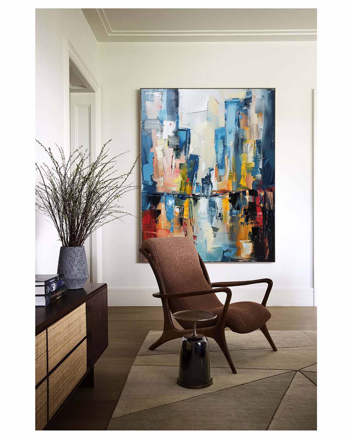 Large Modern Color Abstract Oil Painting Modern Urban Color Abstract Textured Canvas Art for Sale