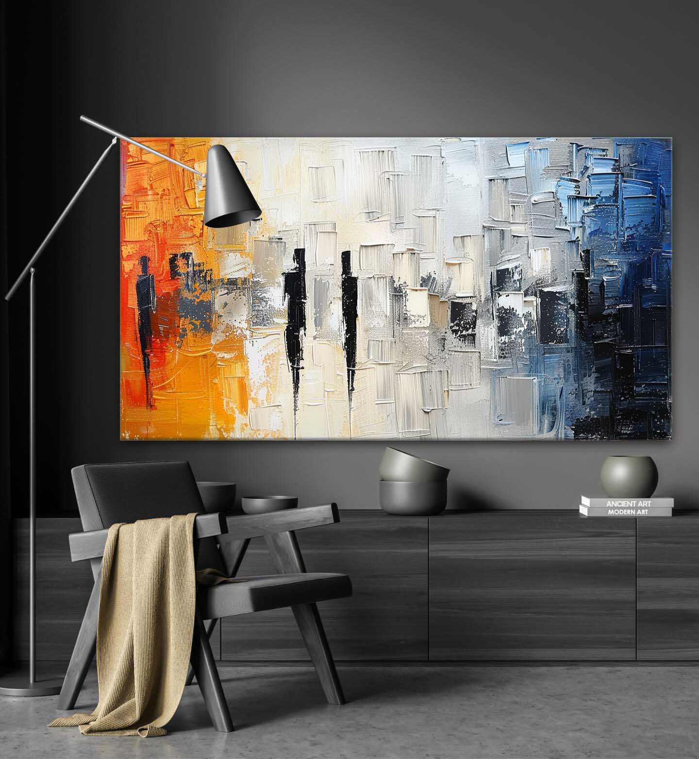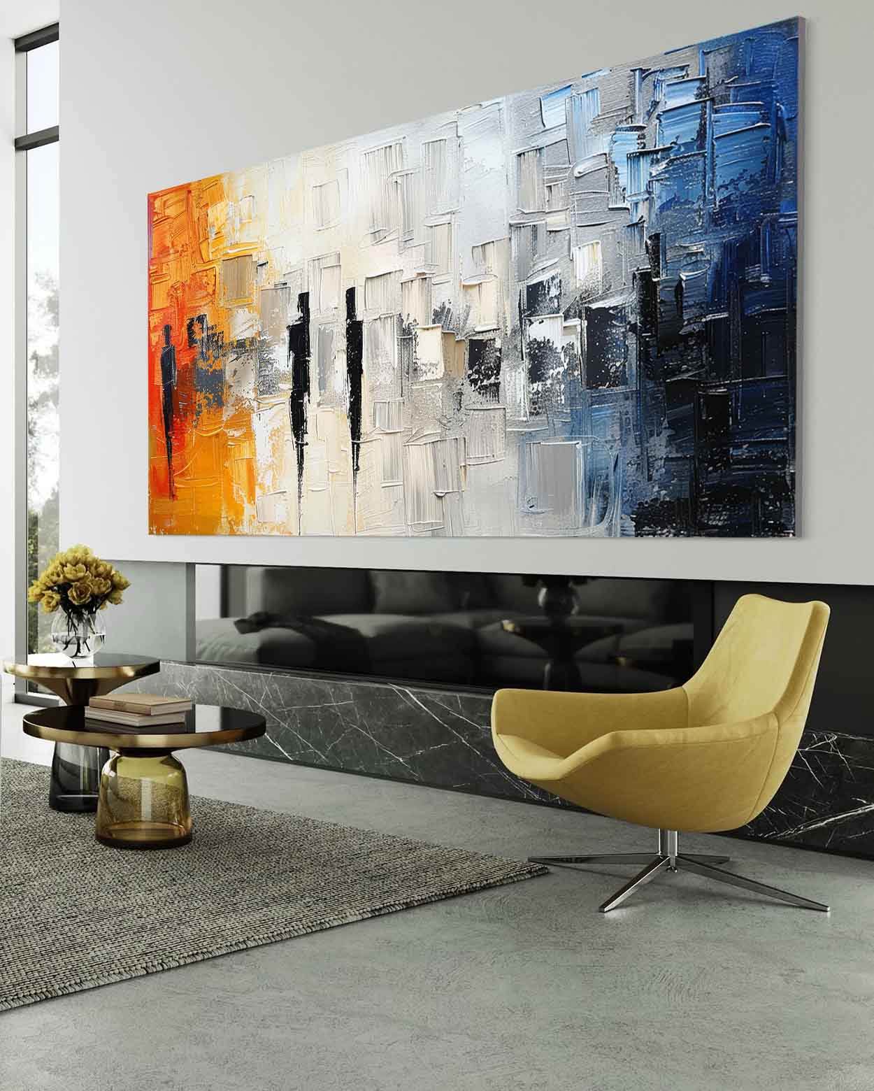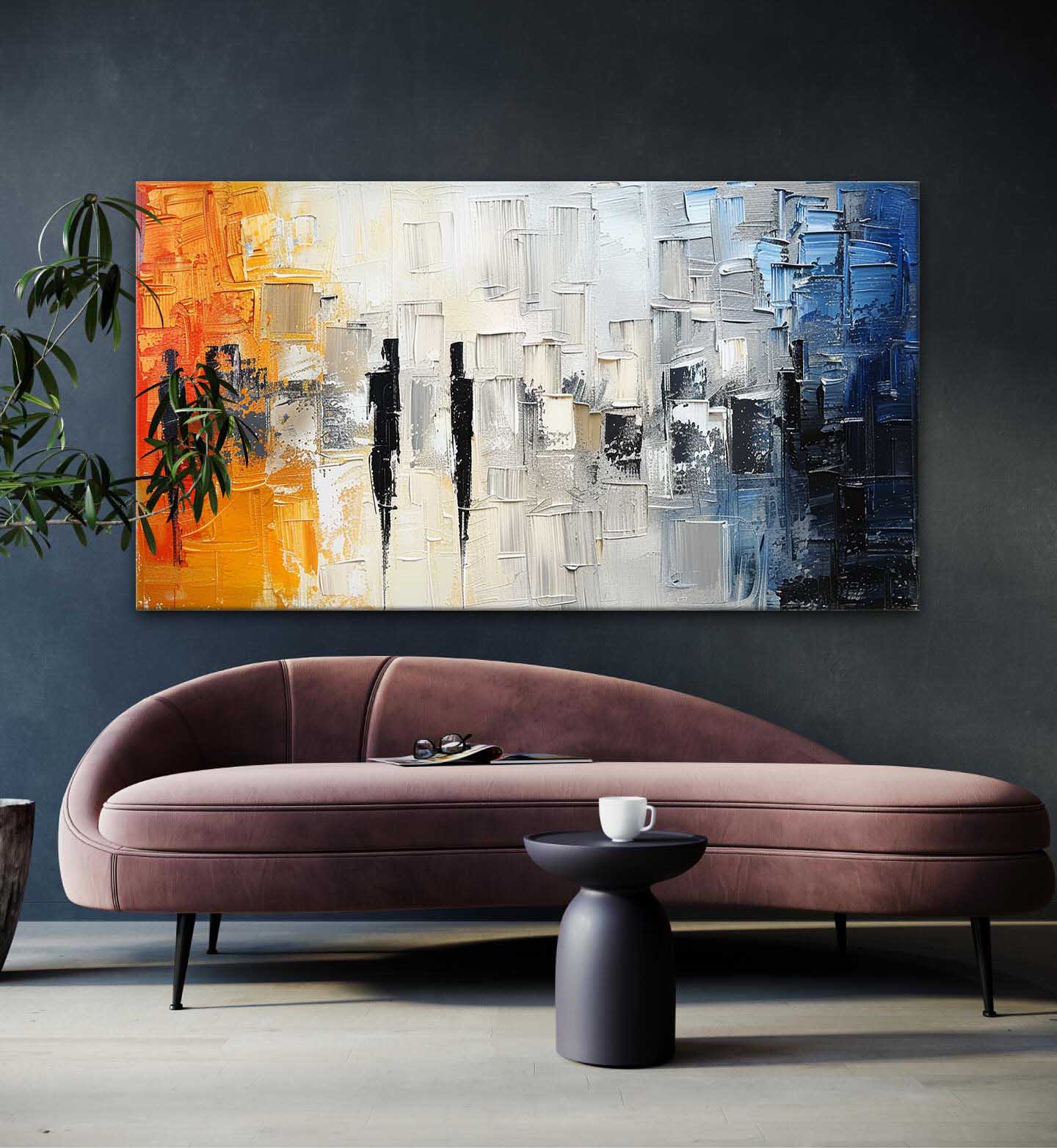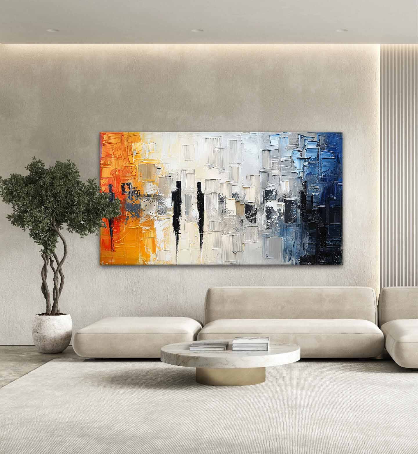 Large White and Blue Abstract Texture Painting White and Orange Urban Texture Canvas Wall Art