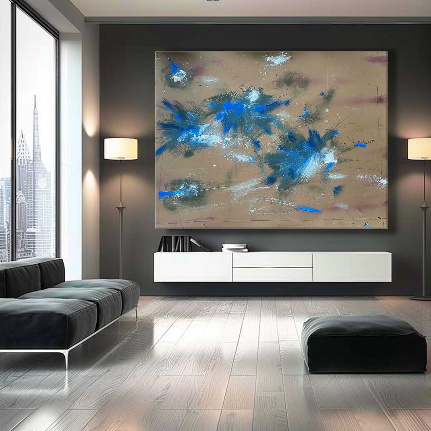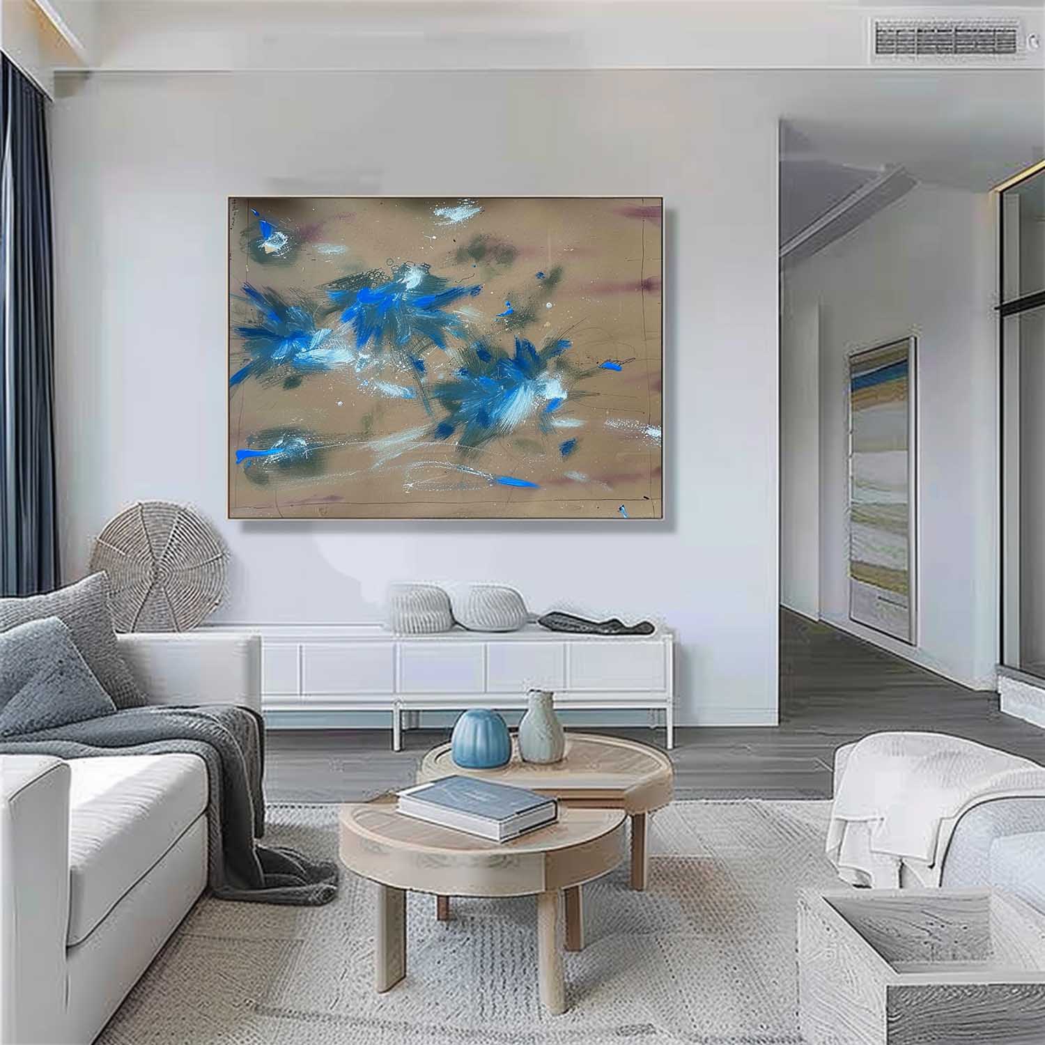 Large Modern Green and Blue Abstract Canvas Wall Decor Green and Blue Abstract Art for Sale