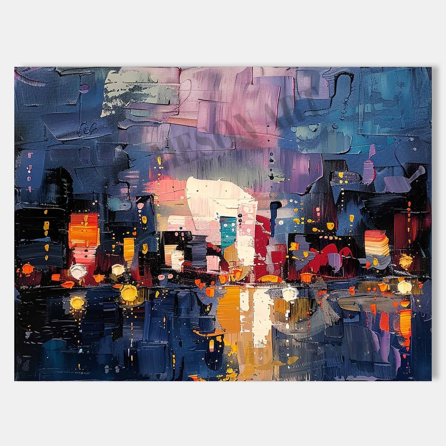 3D City Night Scene Texture Painting 3D Colorful City Night Scene Canvas Wall Art for Sale