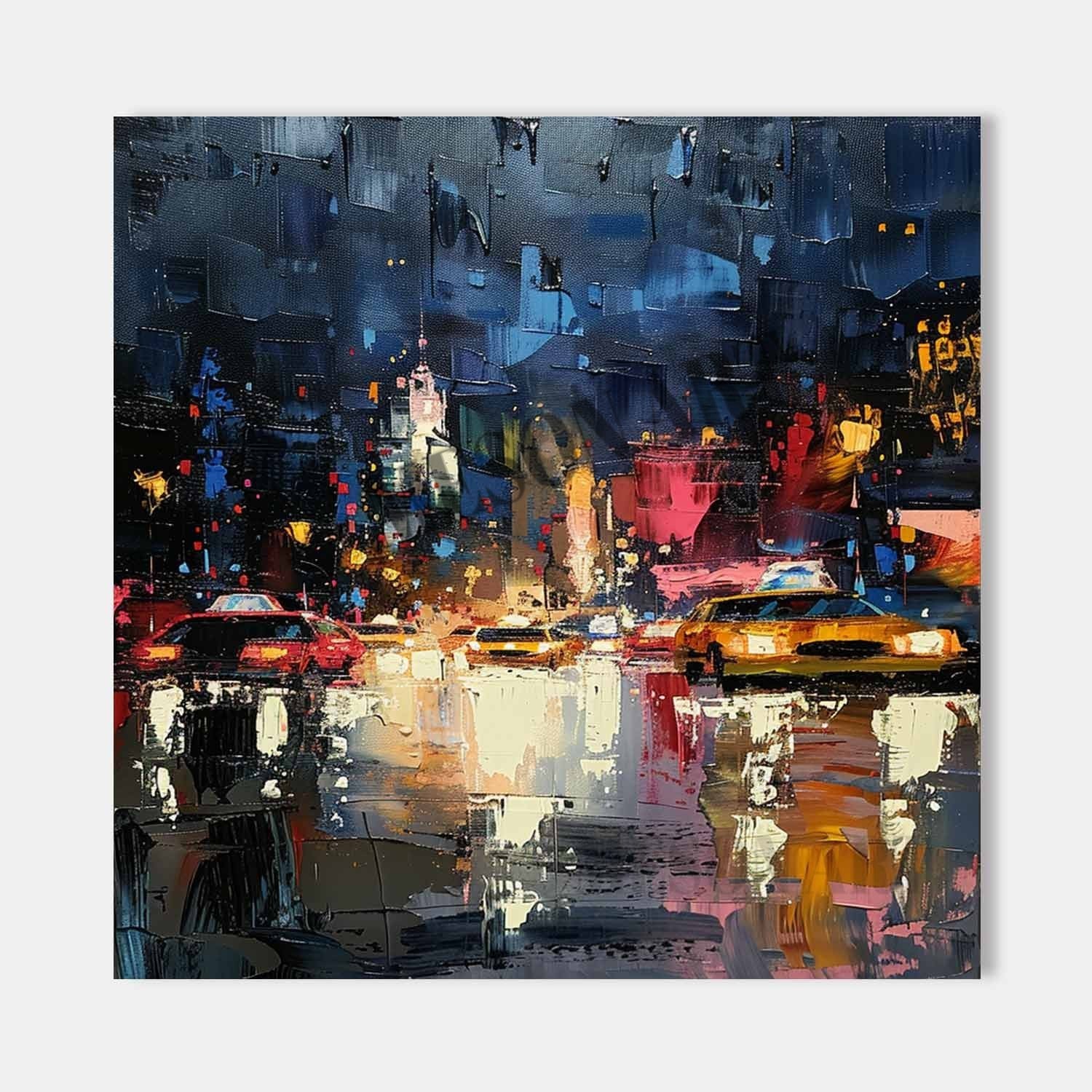 City Street Night Scene Texture Painting 3D Colorful City Street Night Scene Canvas Wall Art