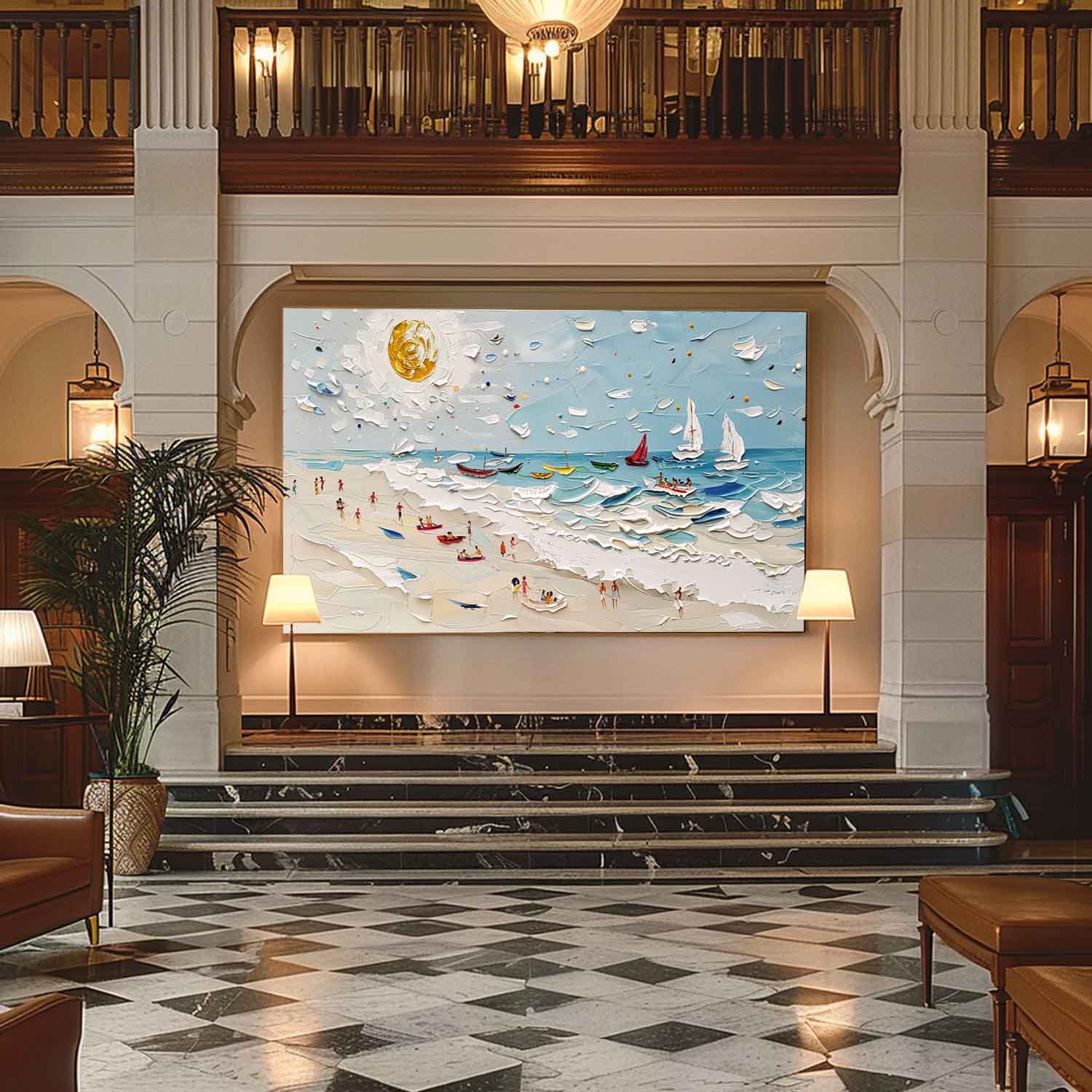 Large Summer Beach Coast Vacation Texture Painting Beach Holiday Landscape Canvas Wall Art for Sale