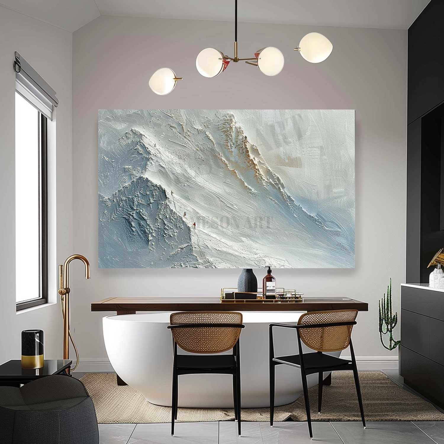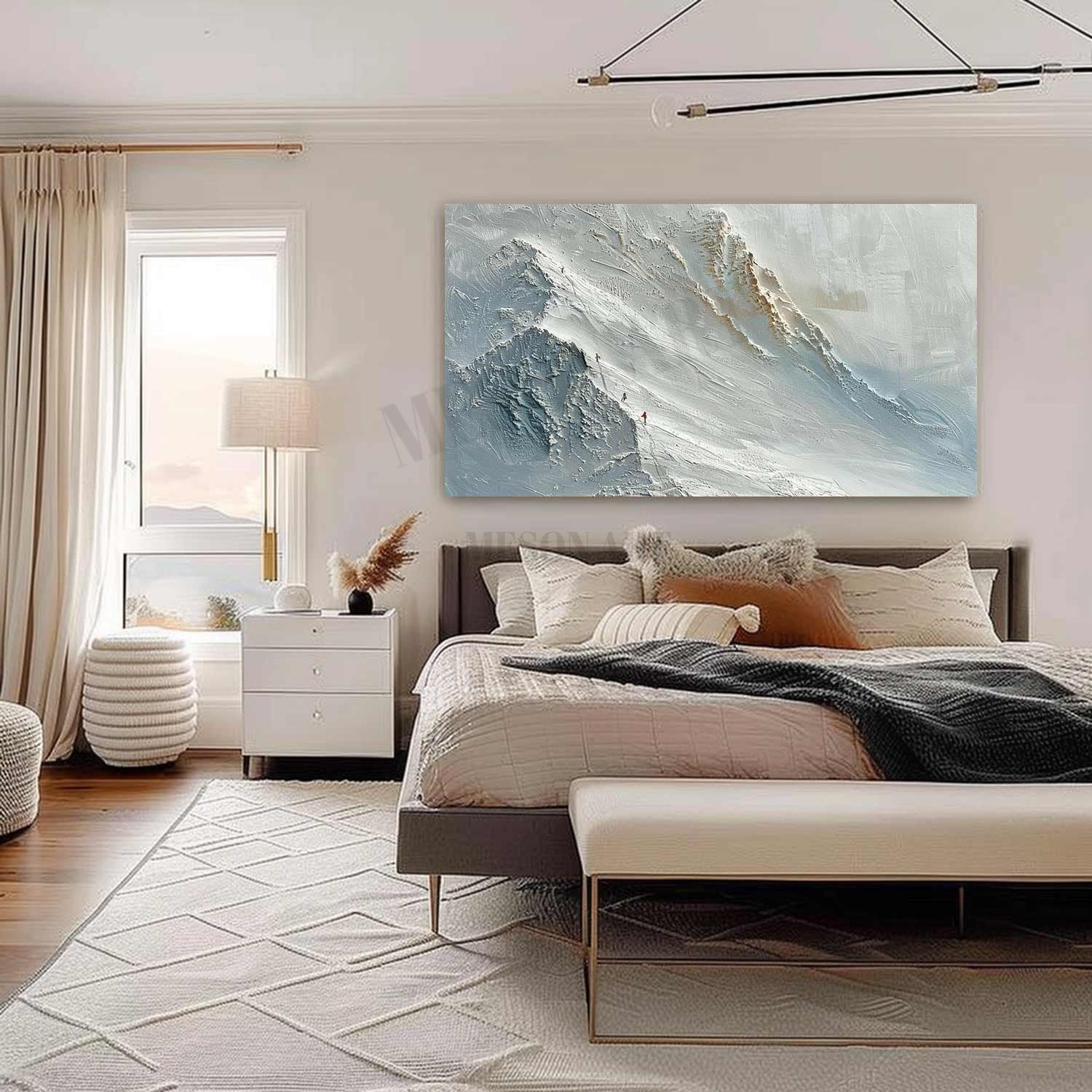Large 3D White Snow Mountain Plaster Texture Painting Snow Mountain Climber Canvas Wall Art Climber Art