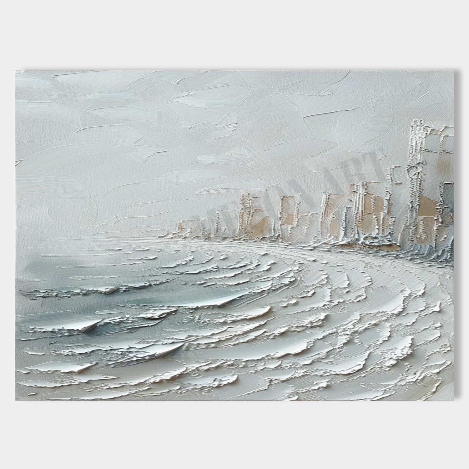 Winter City Canvas Art Winter City Wall Art Winter Seaside City Texture Paintings for Sale