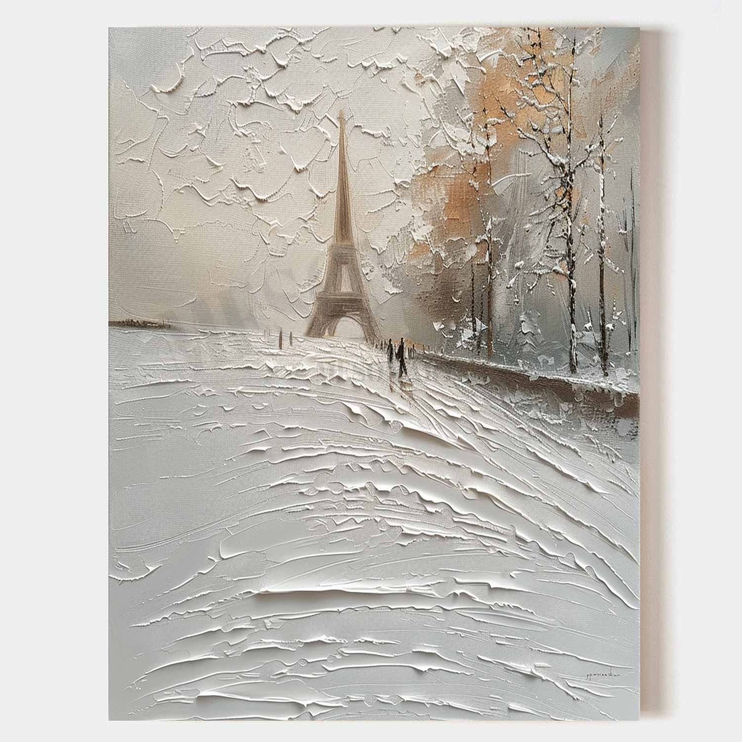 French Eiffel Tower Abstract Texture Painting French Snow Art Canvas White Eiffel Tower City Wall Art