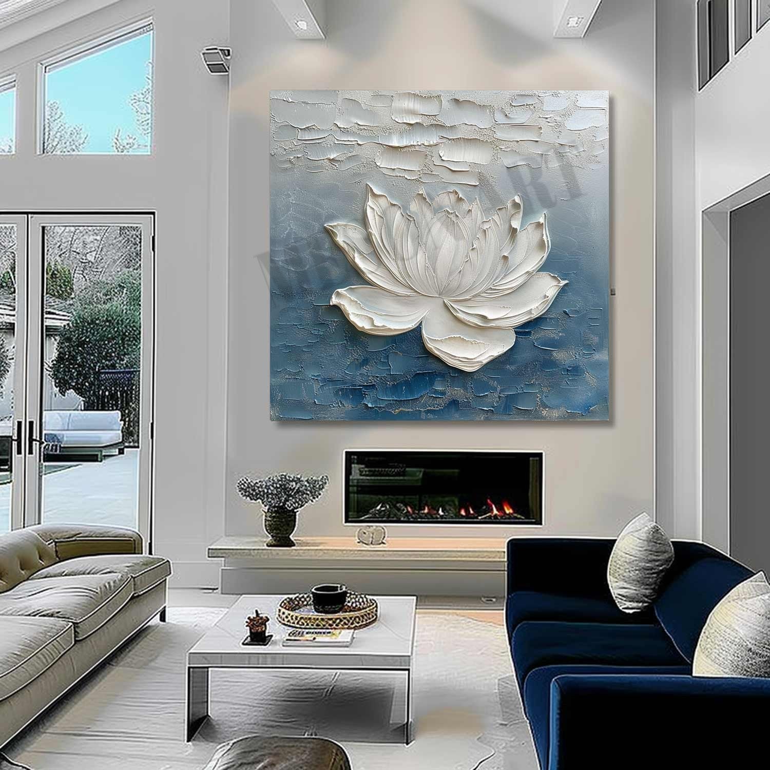 Monet Style Lotus Oil Painting for Sale 3D Textured Flower Canvas Wall Art White Plaster Flower Canvas Art