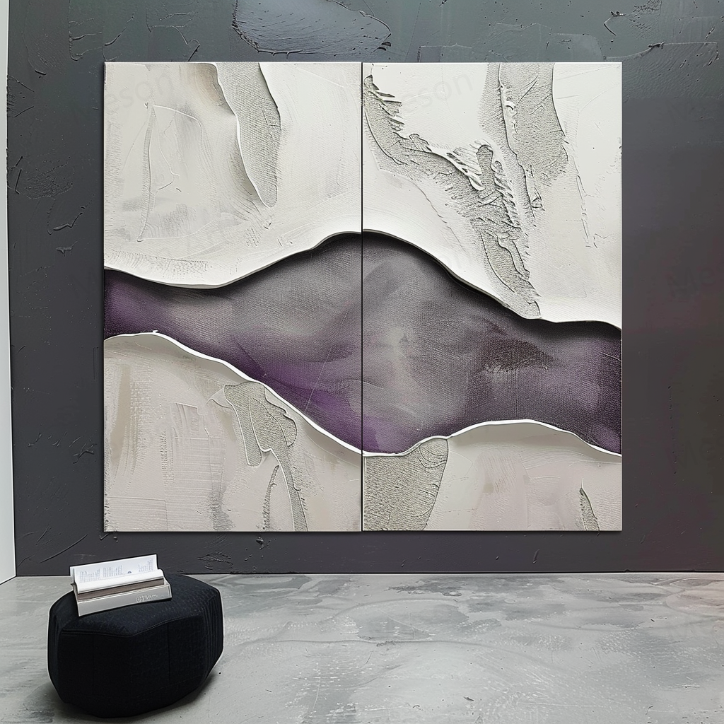 Large Purple and Gray Minimalist Abstract Texture Paintings Set of 2 Purple and Gray Minimalist Canvas Wall Art for Sale