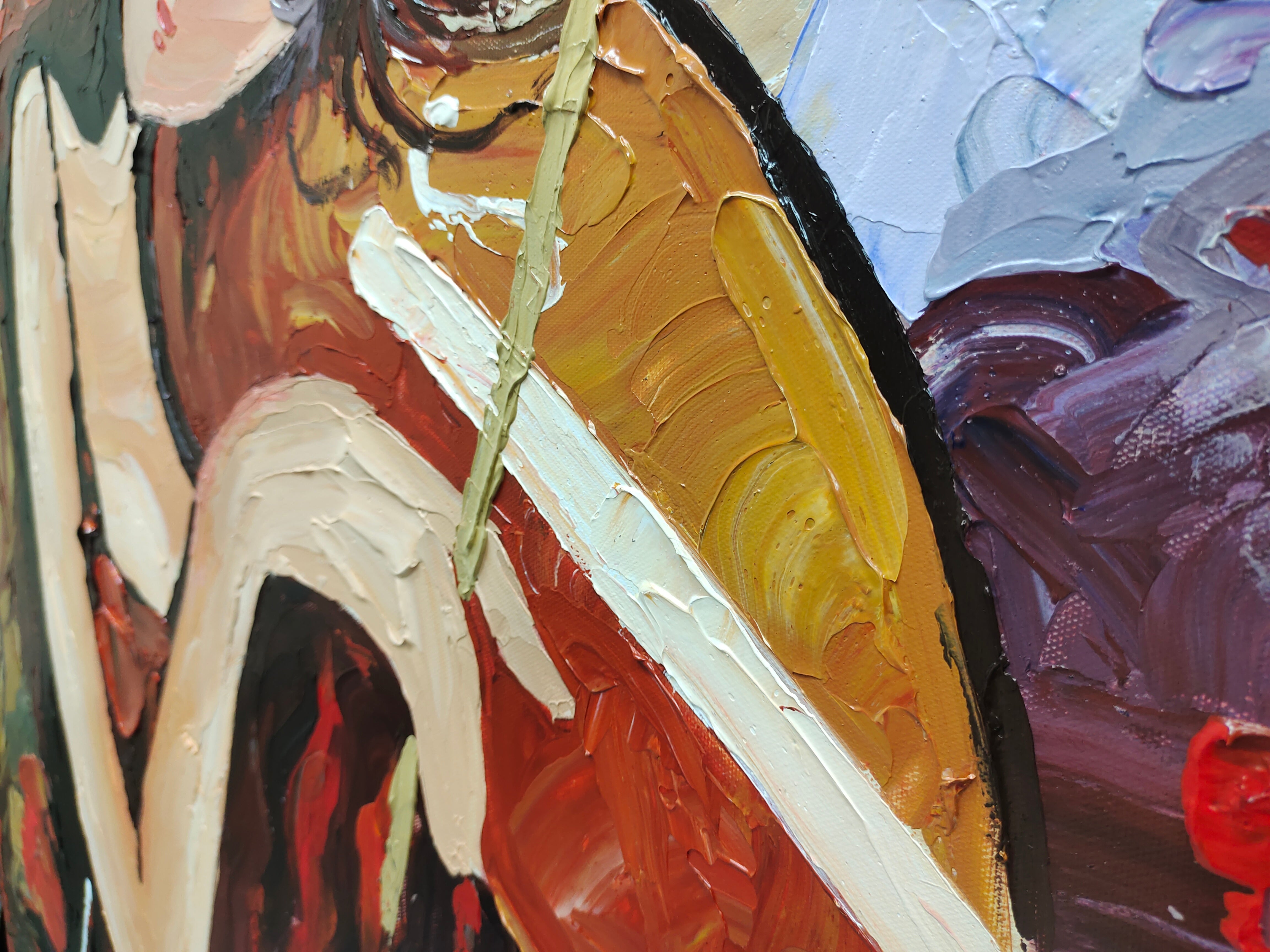 • Materiale: Colori professionali ad olio/acrilici, tela di lino di alta qualità.