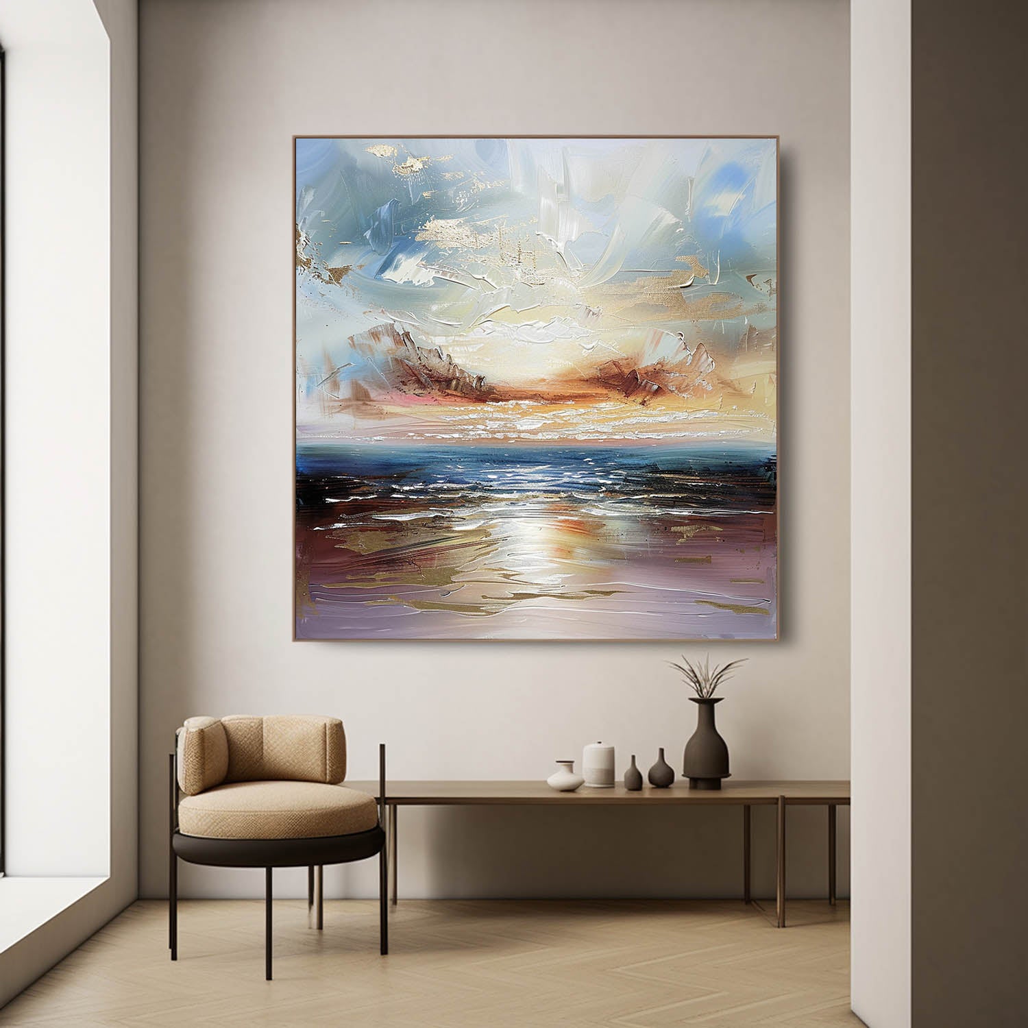 Sea Sunrise Landscape Art For Sale Blue and Gold Sea Sunrise Landscape Abstract Canvas Wall Painting