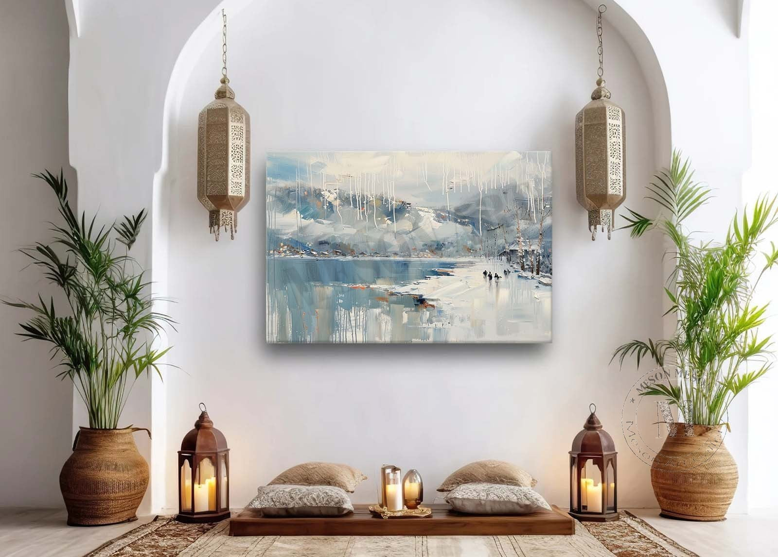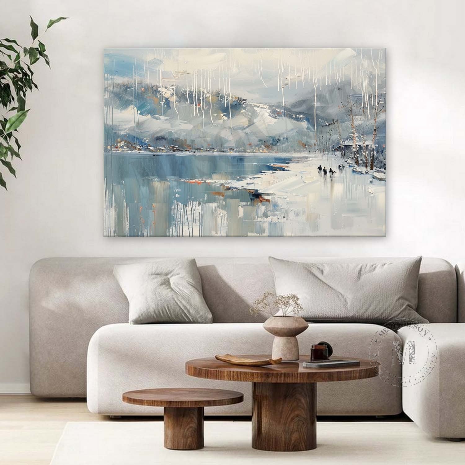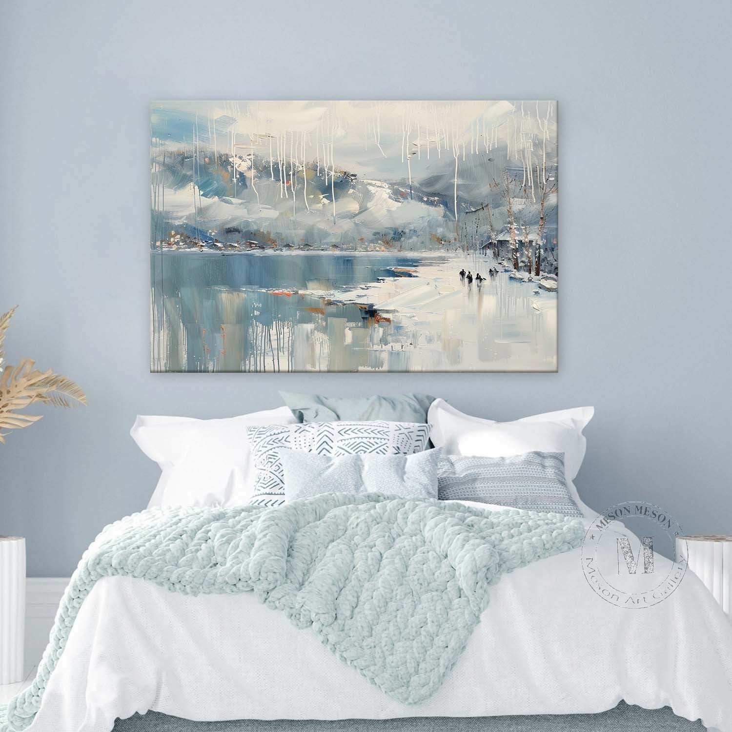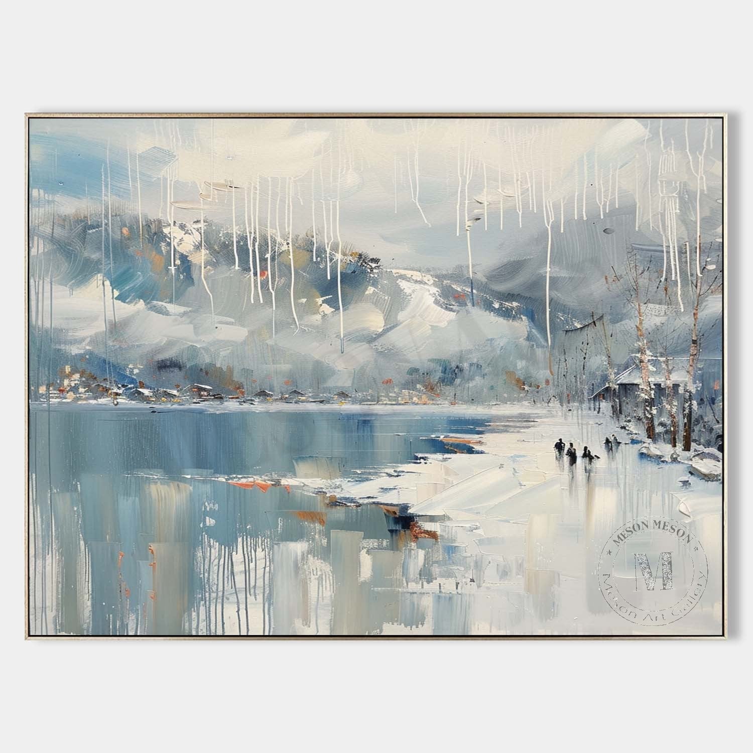 Lakeside Snow Art Lakeside Snow Scenery Oil Painting White Lakeside Snowy Scenery Canvas Wall Art Decor