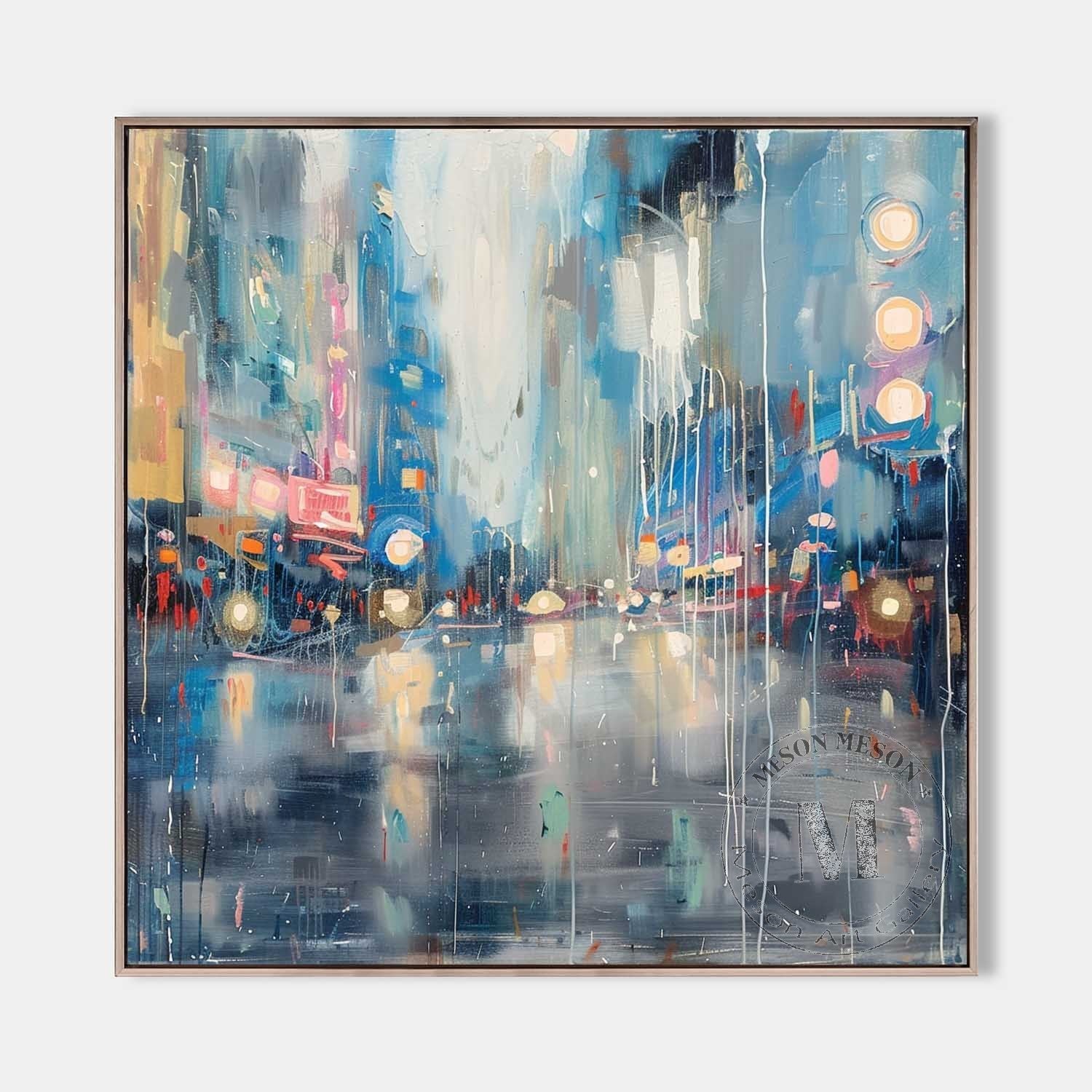 Night City Neon Light Abstract Canvas Art 40*40 Night City Wall Art Decoration Hanging Painting