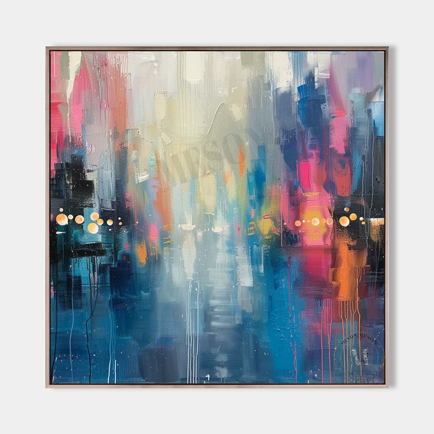 Blue Night City Abstract Art for Sale 50*50 Blue Night City Canvas Wall Decor Art Decoration