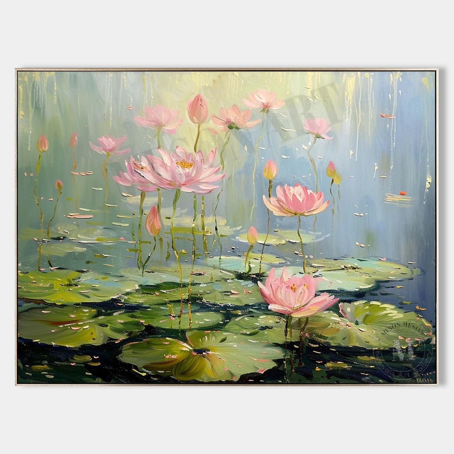 Lotus Flower Canvas Wall Art Decor Green Monet Lotus Flower Art For Sale Monet Lotus Flower Painting
