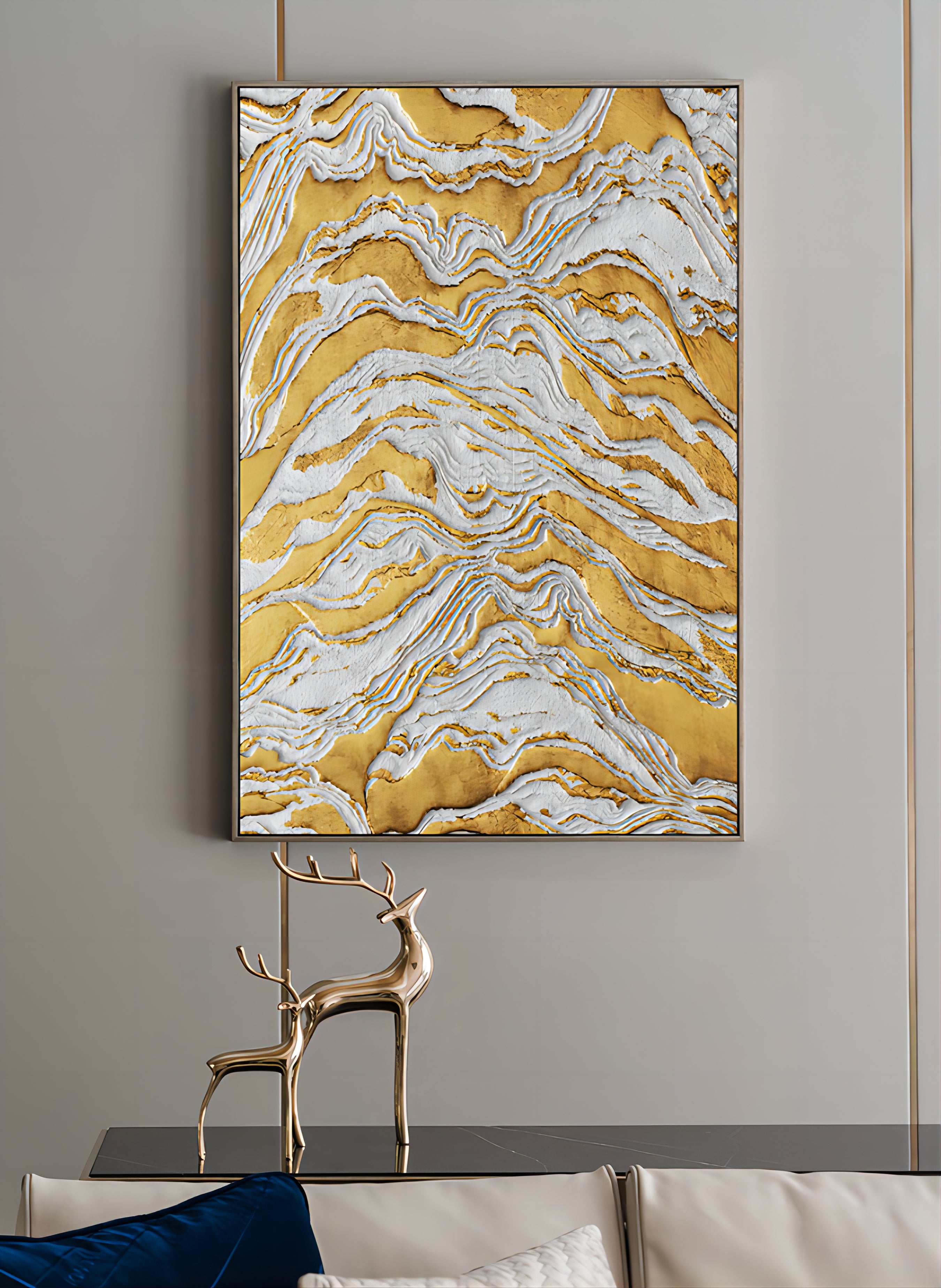 Gold and White Abstract Oil Painting Gold 3D Textured Acrylic Canvas Art Luxury House Decoration Painting