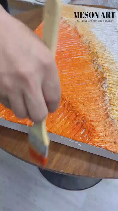 Large Orange And White Sea Wave Texture Painting 3D Plaster Art On Canvas Sea Modern Wall art Decor