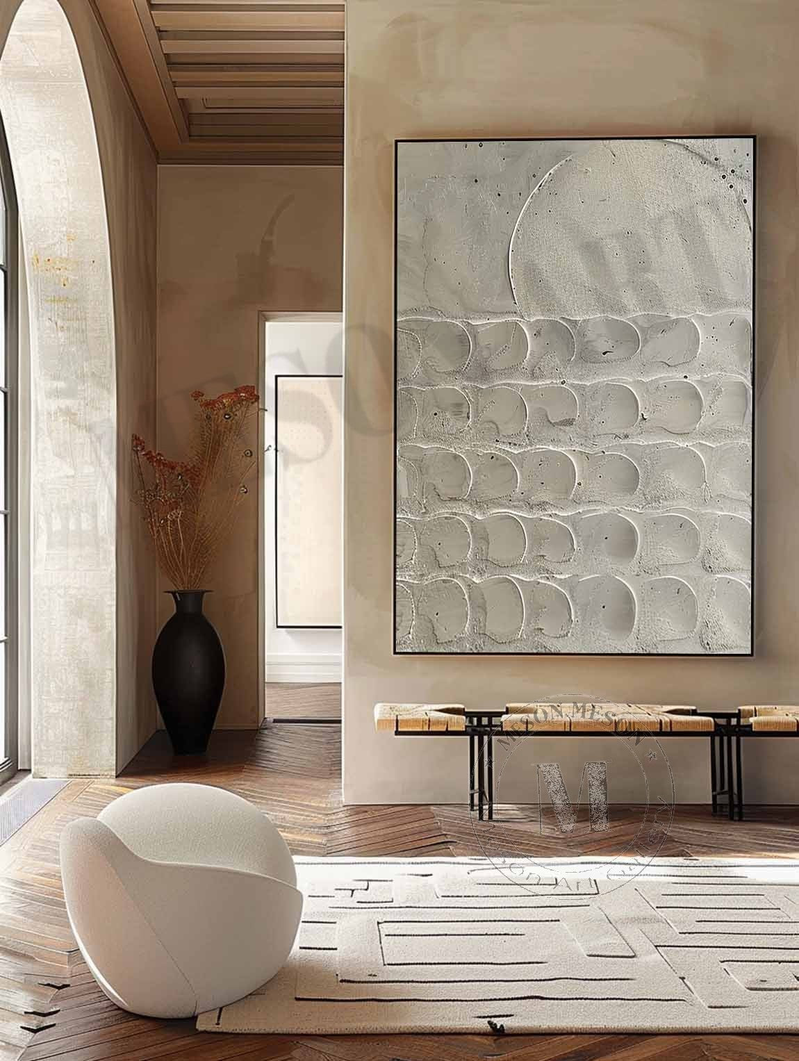3D Beige Plaster Canvas Art for Sale Beige Plaster Minimalist Abstract Texture Wall Painting